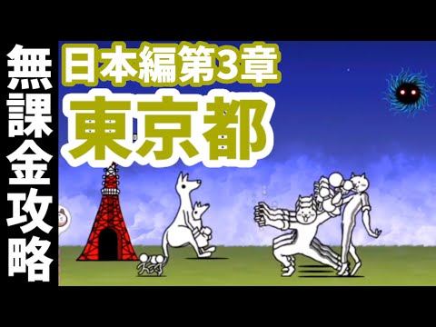 にゃんこ大戦争の日本編第3章の35ステージ目【東京都】を無課金キャラのみで攻略する動画です!